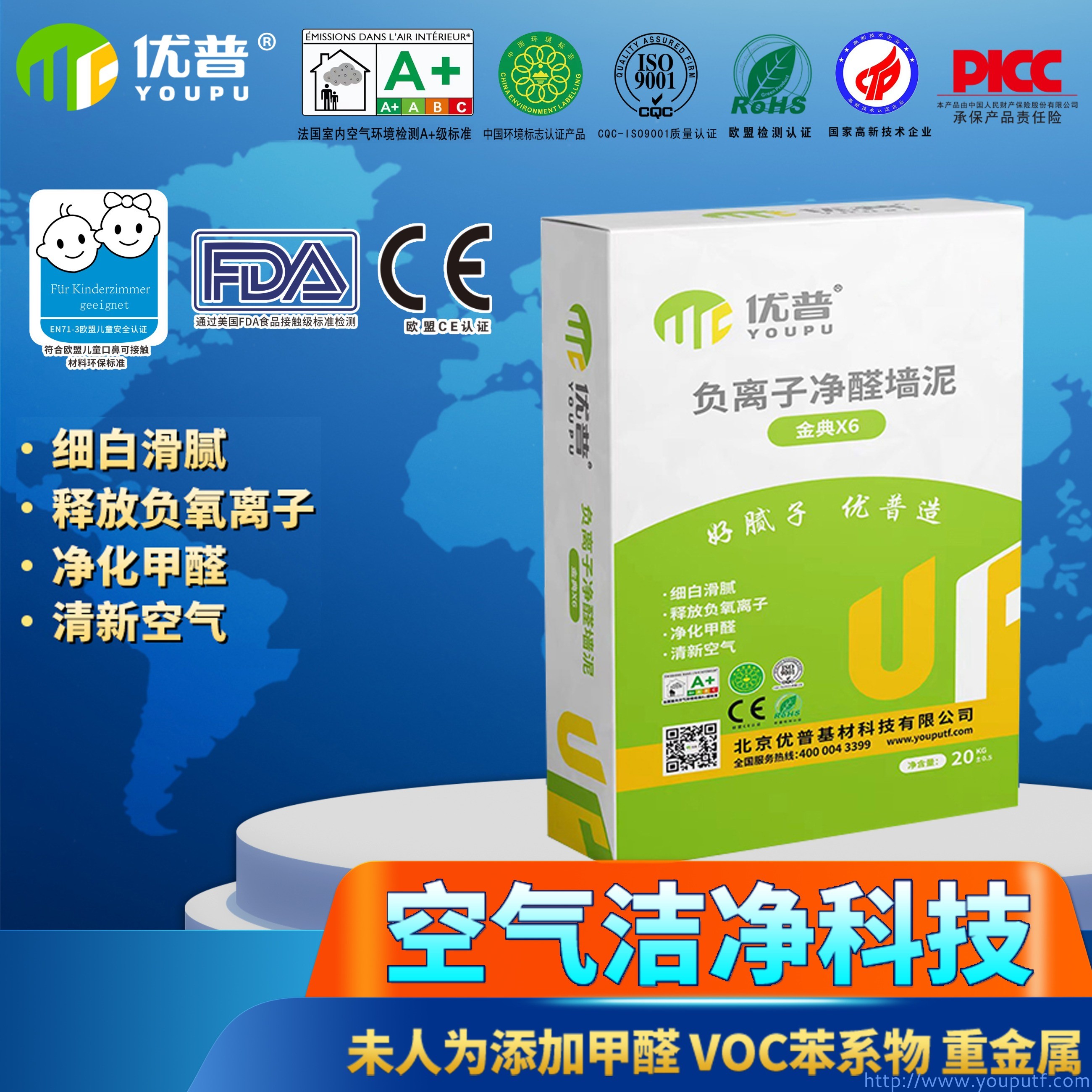 | 產品特點: | 施工優異,細白滑膩,釋放負氧離子,持續去除甲醛。歐洲標準,通過法國A+,產品為添加甲醛、VOC(揮發性有機化合物)、苯系物(苯、甲苯、乙苯、二甲苯)、重金屬(鉛、鎘、鉻、汞)。 |